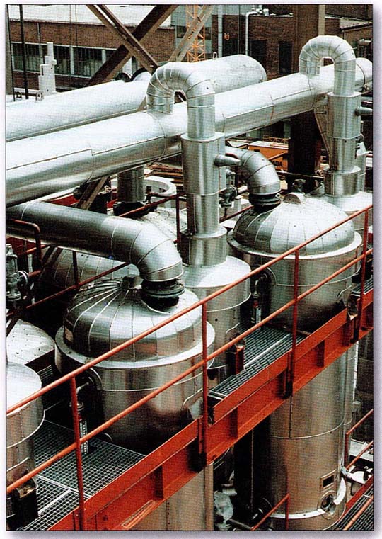蒸發(fā)設(shè)備可分為普通多效蒸發(fā)器和閃蒸設(shè)備。Ebner閃急蒸發(fā)(簡(jiǎn)稱閃蒸)設(shè)備是一種高效的多級(jí)連續(xù)真空蒸發(fā)設(shè)備,尤其適用于蒸發(fā)能力在5t/h以上,閃蒸設(shè)備因?yàn)槠湔舭l(fā)能力強(qiáng)、蒸汽耗用量小已在國(guó)內(nèi)廣泛推廣使用。酸浴閃蒸的特點(diǎn)是: