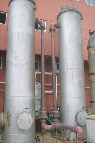 代替?zhèn)鹘y(tǒng)的鉛、不銹鋼盤管式換熱器,本設(shè)備材質(zhì)為不透性石墨、較鉛、不銹鋼有良好的耐腐蝕性